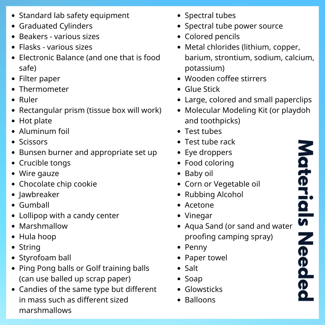 - Save on your budget! Without buying ALL those other chemicals, spend your science budget on other things on your wish list