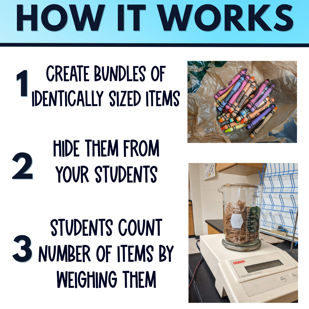 This counting by weighing lab activity helps to solidify the mole concept for your students by having them measure things they can't see!