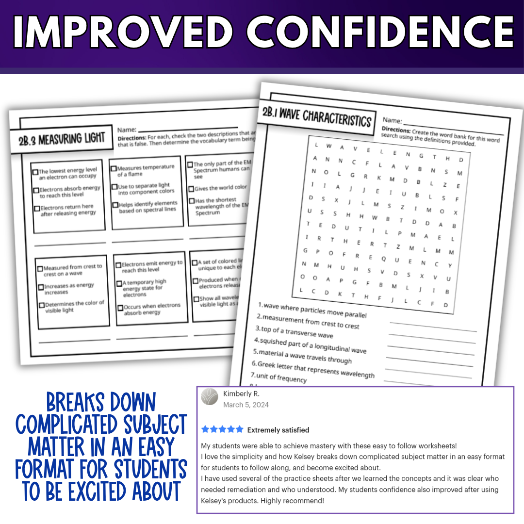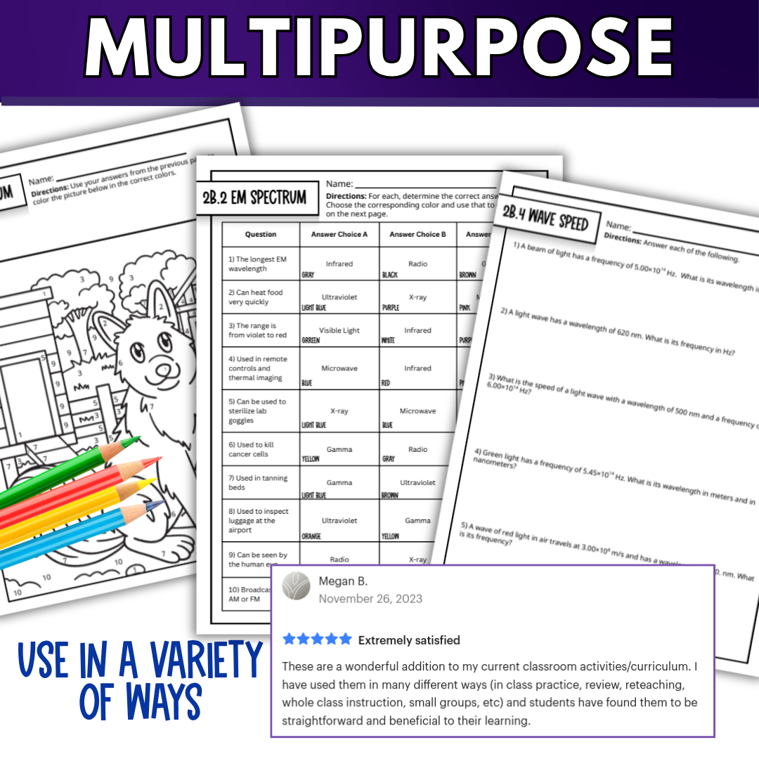 Light Waves Quick Practice Worksheets, Chemistry Homework or Classwork