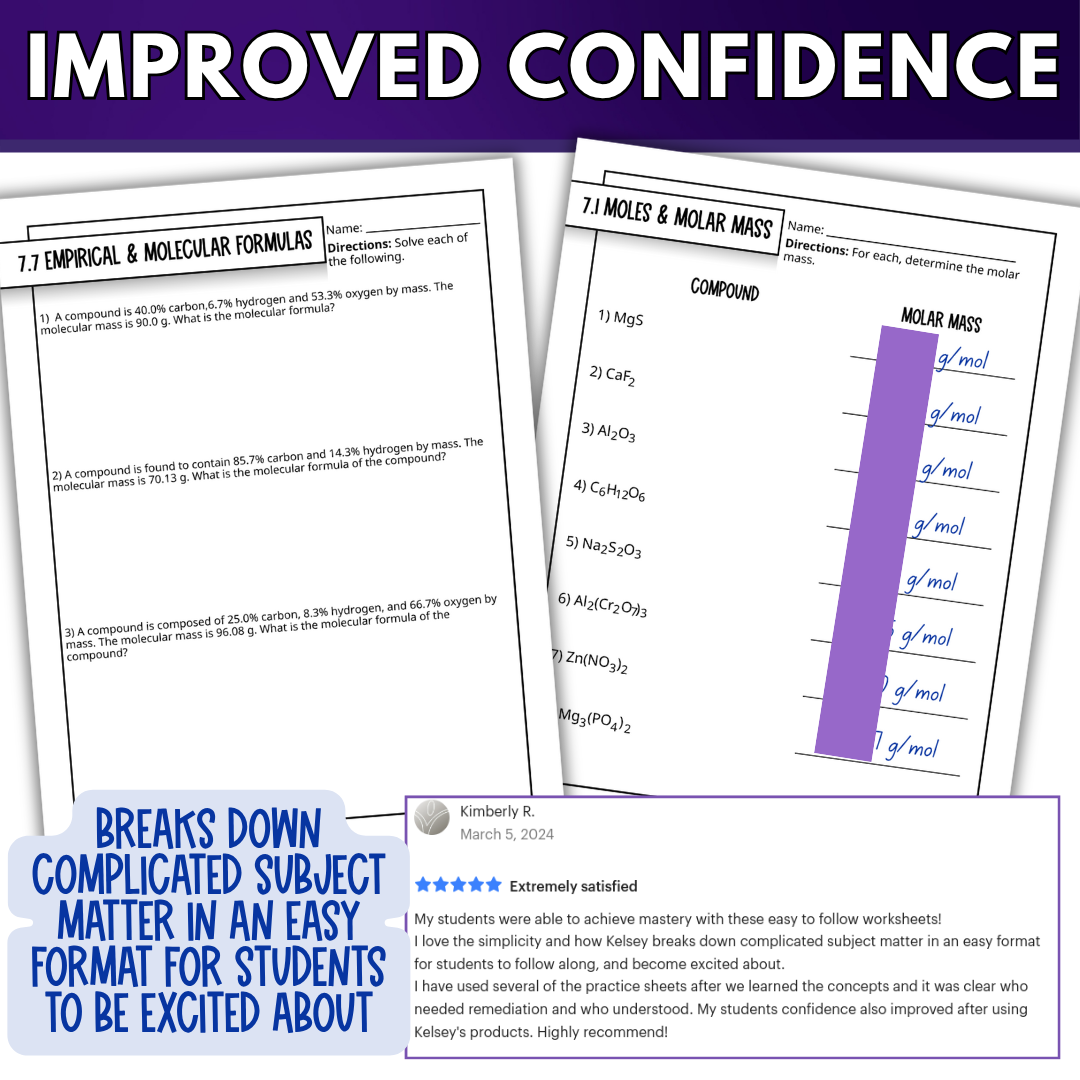 This collection of chemistry worksheets on the moles and stoichiometry. Use these alongside your chemistry lessons as classwork, homework, quizzes or exit tickets & bell ringers. Worksheets are based on the following lessons/topics: