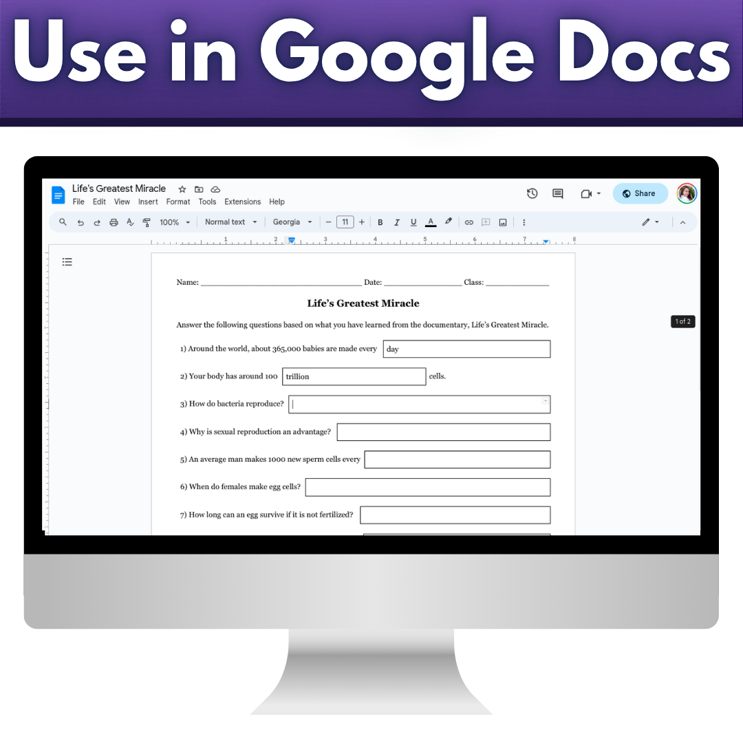 Use this movie question worksheet for the documentary on fertilization, embryonic and fetal development and birth by PBS NOVA, Life's Greatest Miracle (Season 28, Episode 16). Use the printable worksheet or the digital editable version in Google Docs.