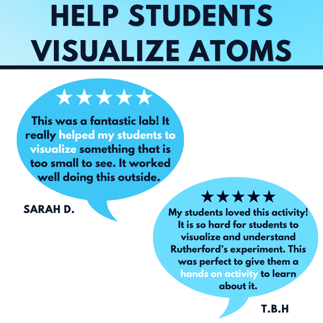 This Rutherford's Gold Foil Experiment lab activity is an excellent visual demonstrating that the atom is mostly empty space. After seeing this lab and demonstration, the students will have a concrete understanding of the nucleus of an atom and how it looks and functions.